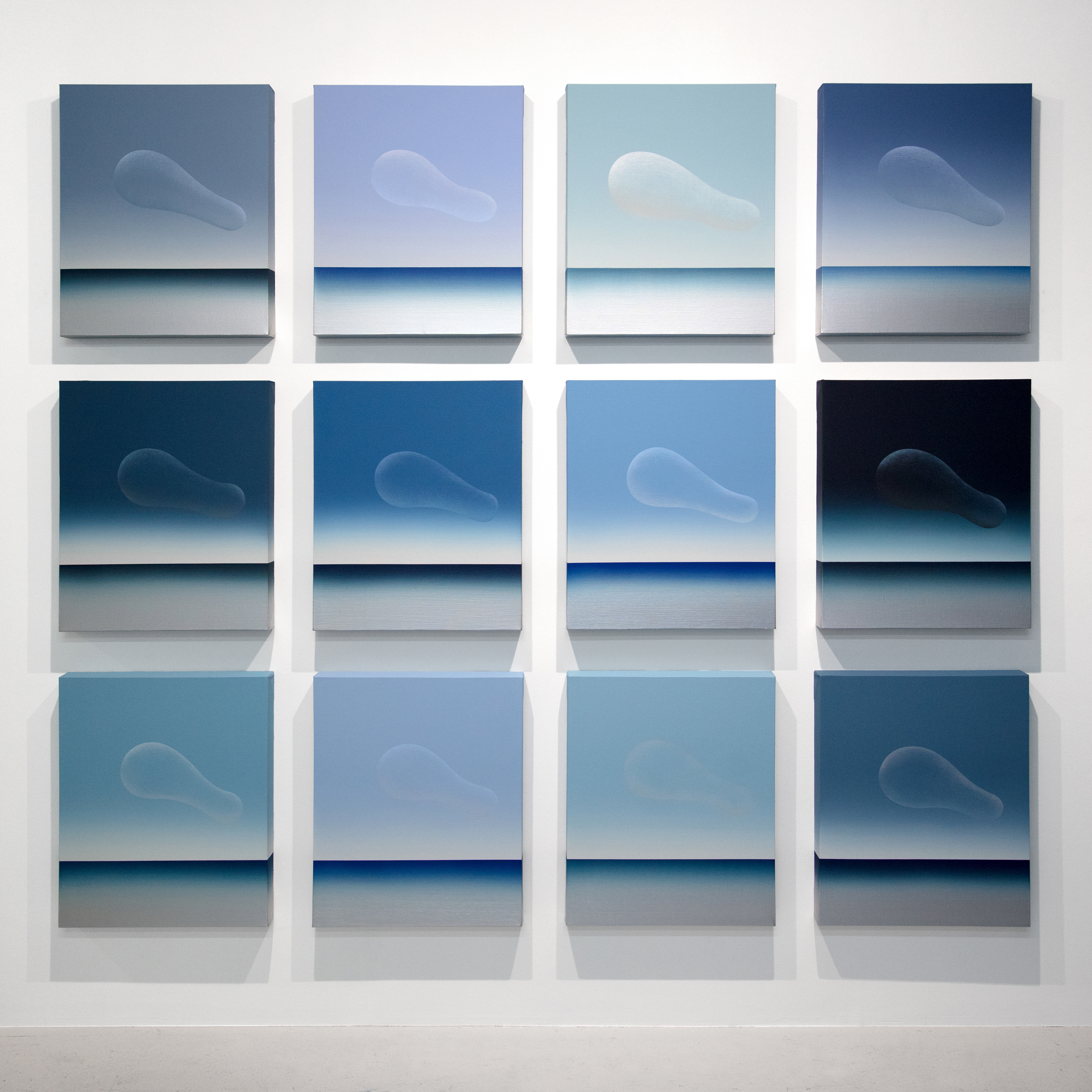 Fantôme, 2021 acrylique au pinceau sur toiles en lin, pigments aluminium, crayons de couleur 202x233 cm