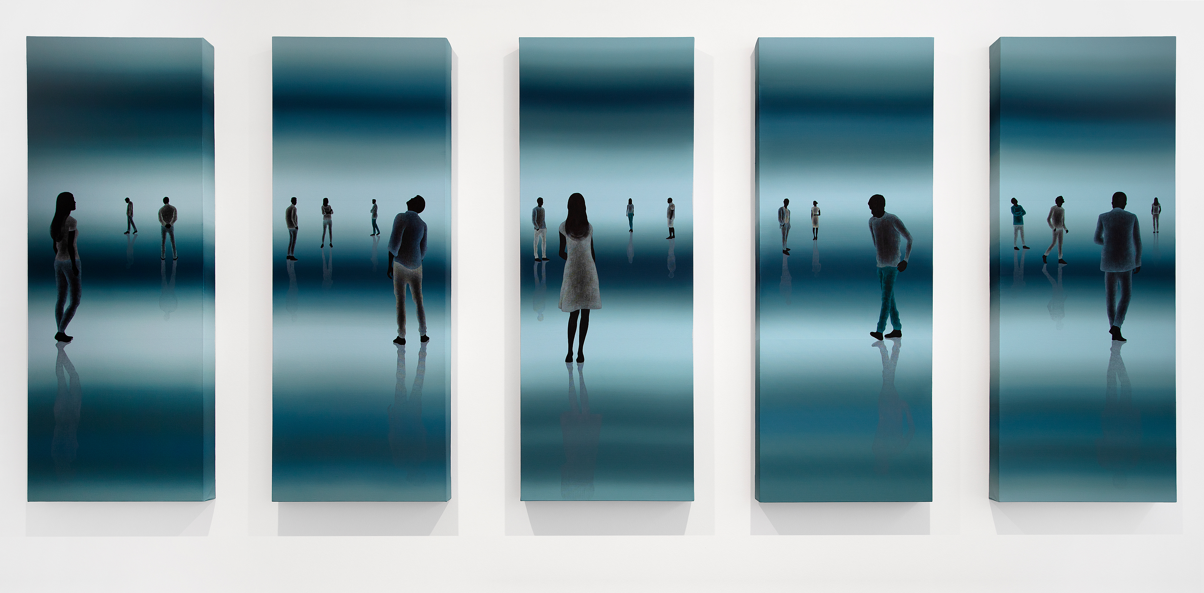 Solitudes, polyptyque, 2022 - acrylique et crayons de couleur sur toile - 130 x 330 cm